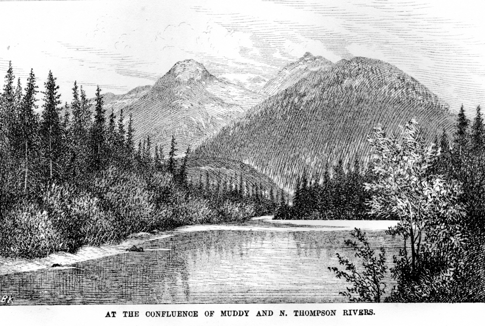 Breakfast by Moonlight.—The Bell-horse.—Mount Cheadle.—Blue River and Mountains. —Goose Creek—The Headless Indian.—Porcupine Breakfast.—The Canyon.—Mule Train.—AtHell Gate, meet friends.—Gathering at Camps U. and V.—Good cheer-— Still water.—Round Prairie.—Exciting news two months old.—Change in the Flora. —Bunch Grass.—Raft River.—Clearwater.—Boat to Kamloops—Assineboine Bluff. —Last night under canvass.—Siwash Houses.—Signs of Civilization.—Stock Raising-—Wages in British Columbia.—Arid aspect of country.—Darkness on the river.— Arrival at Kamloops.