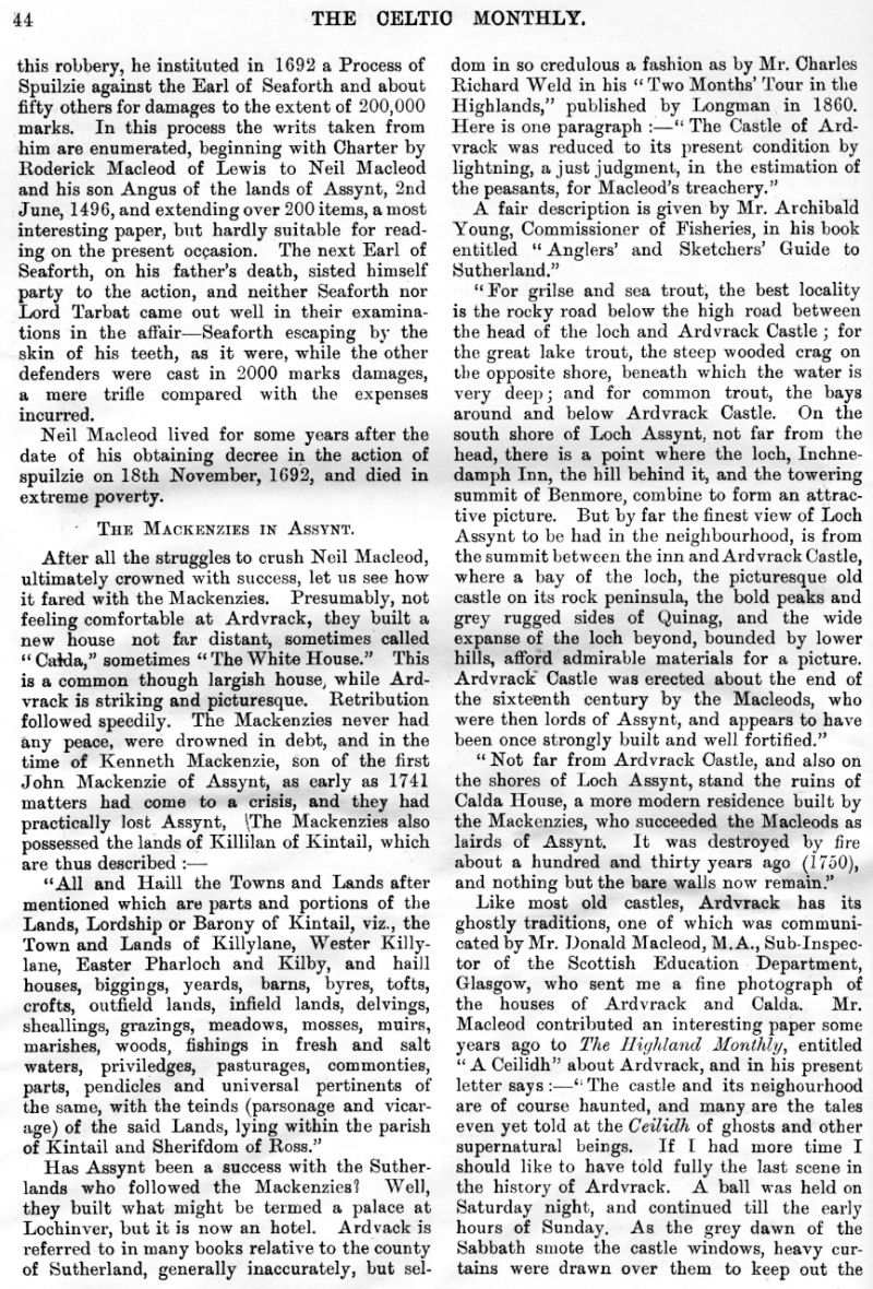 William C. MacLeod, Neil MacLeod last of the MacLeods of Assynt, The