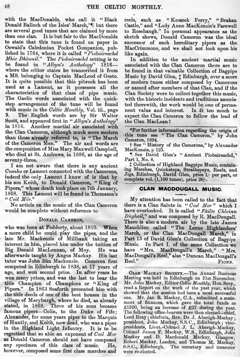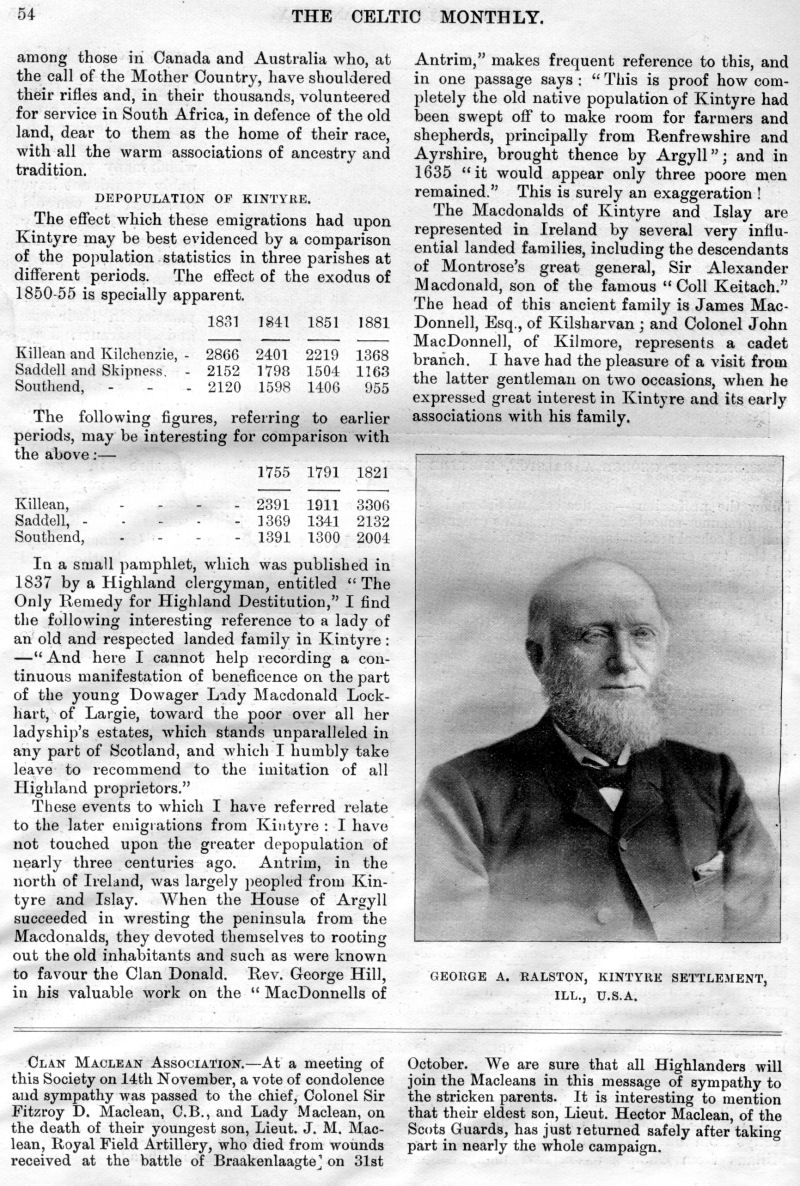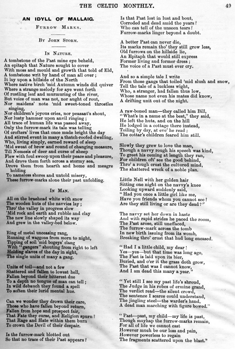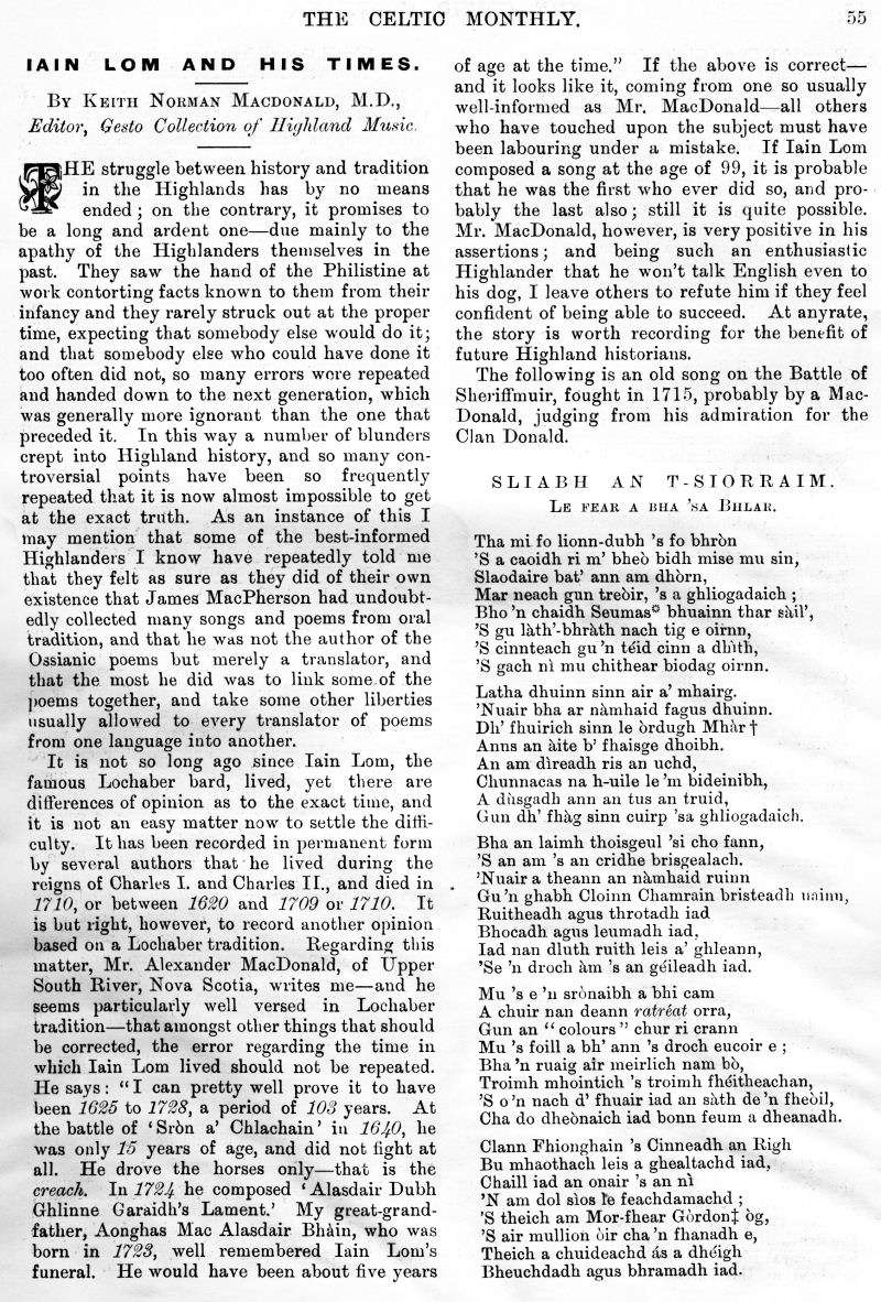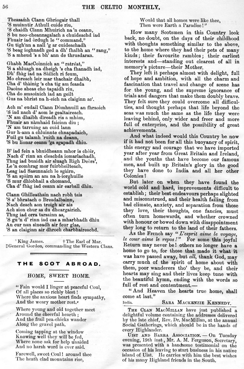 and Depopulation, Iain Lom and his Times, The Scot Abroad, A Mull Song,