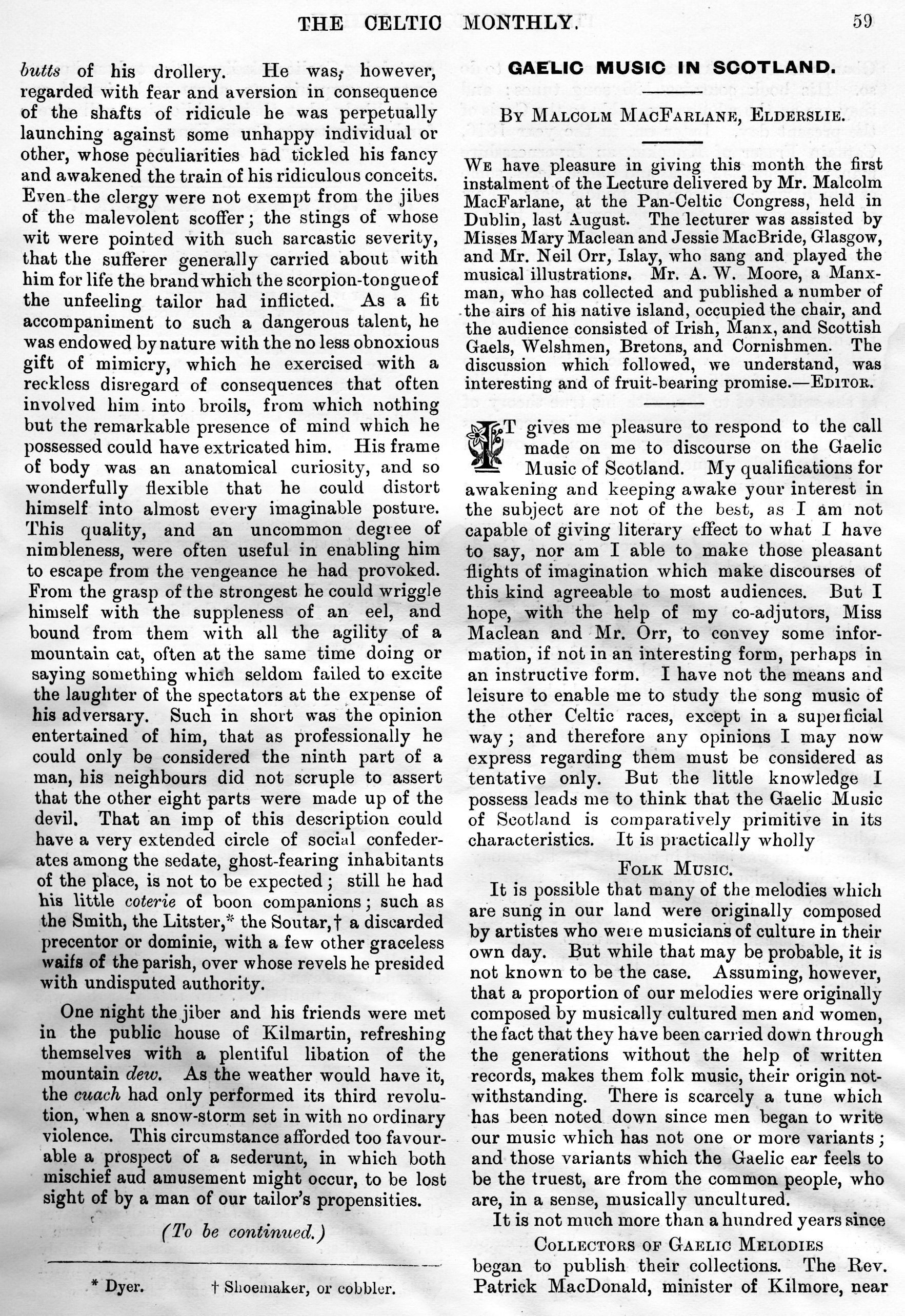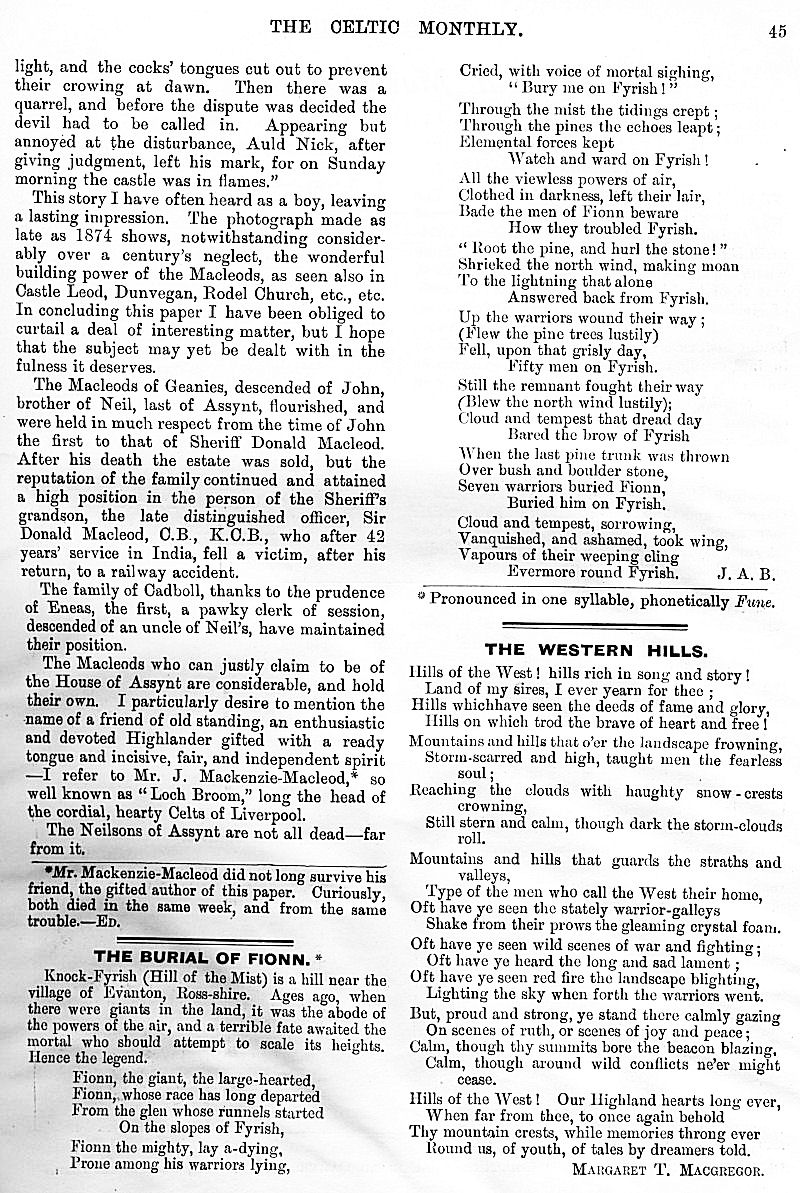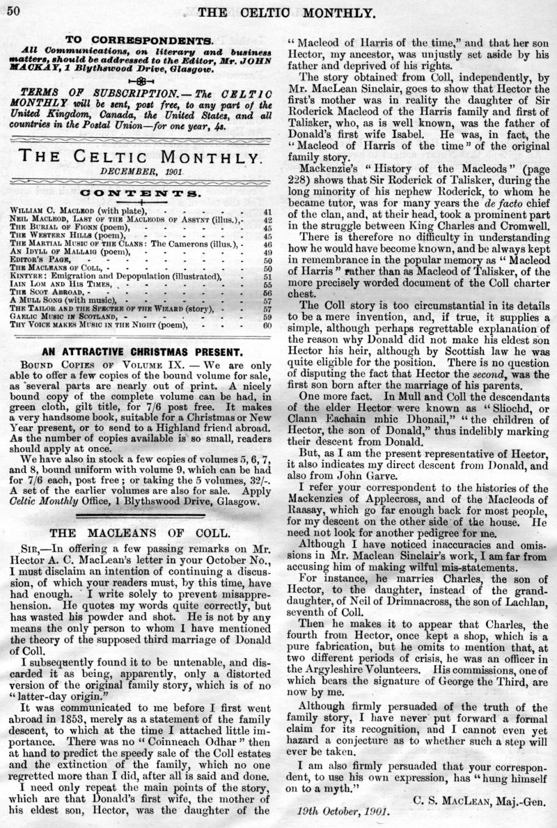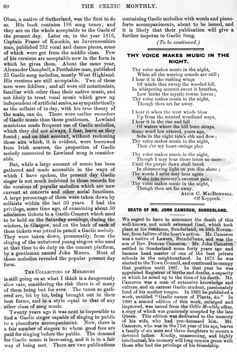 and Depopulation, Iain Lom and his Times, The Scot Abroad, A Mull Song,