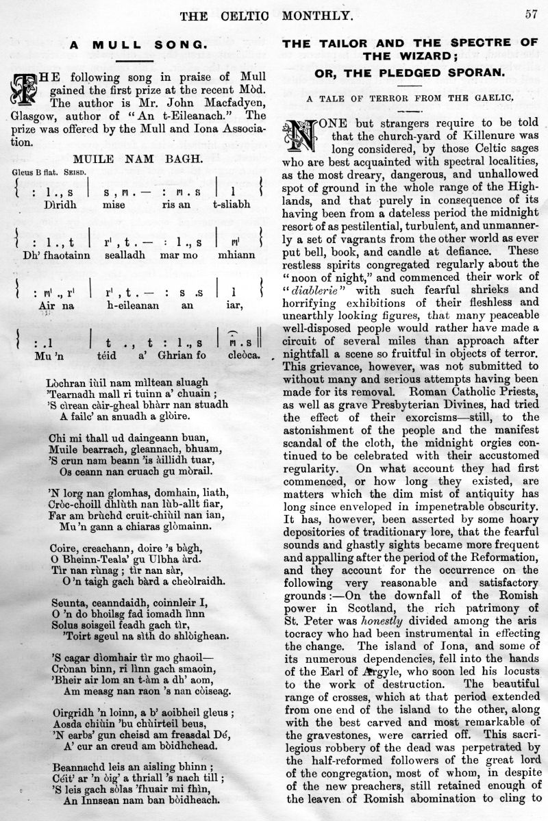 The Fledged Sporan - a tale of Terror from the Gaelic, Gaelic Music in