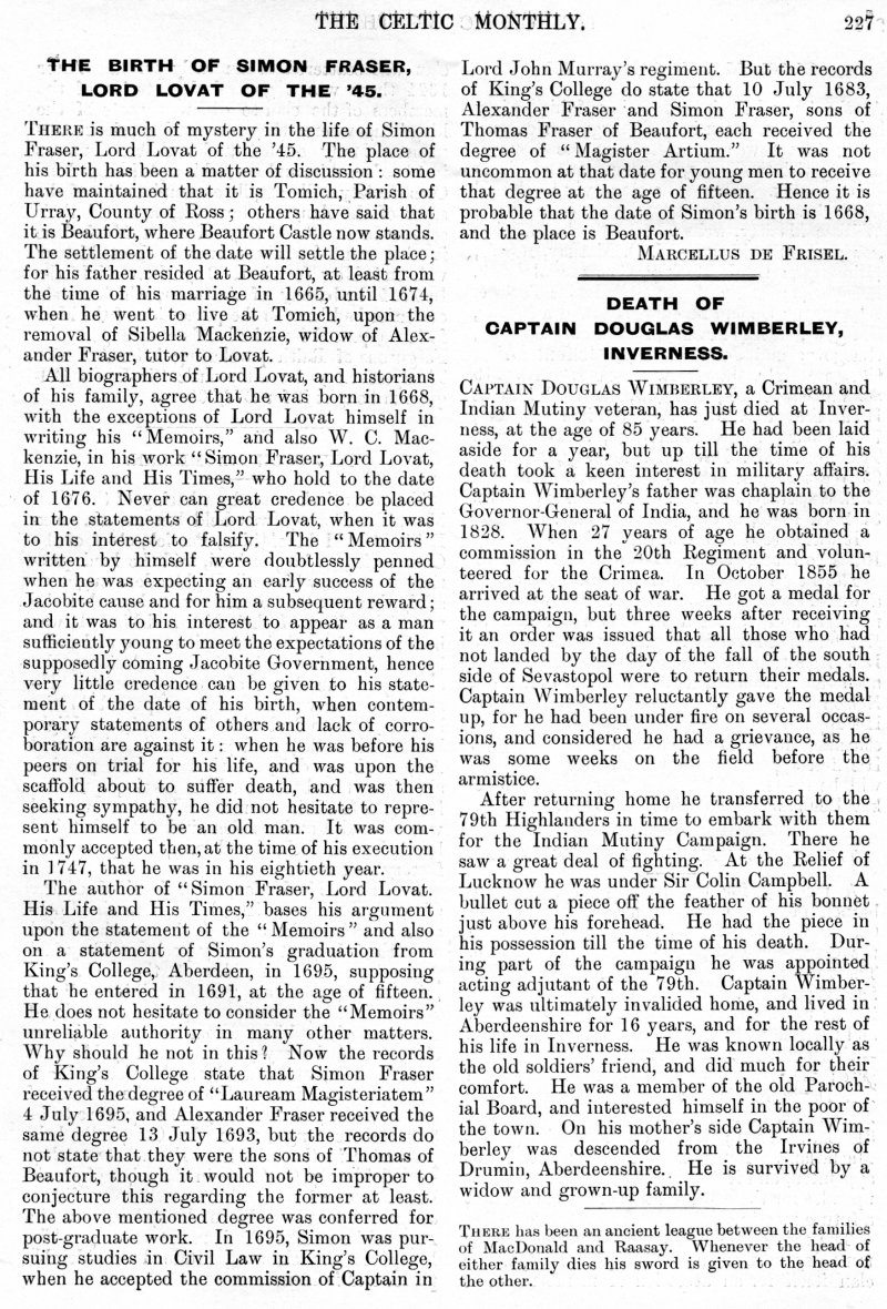 Fraser Lord Lovat of the '45, Death of Captain Douglas Wimberley of