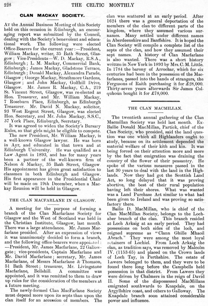 Inverness, Clan MacKay Society, The Clan MacFarlane in