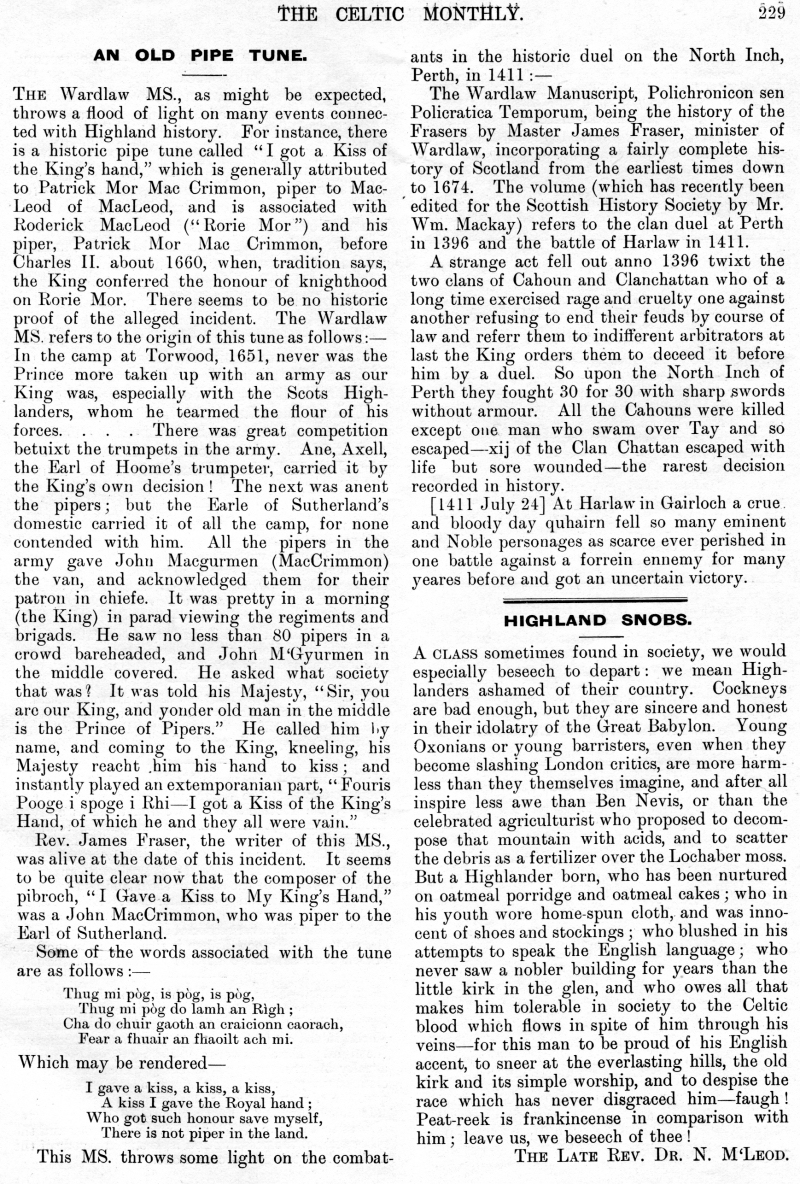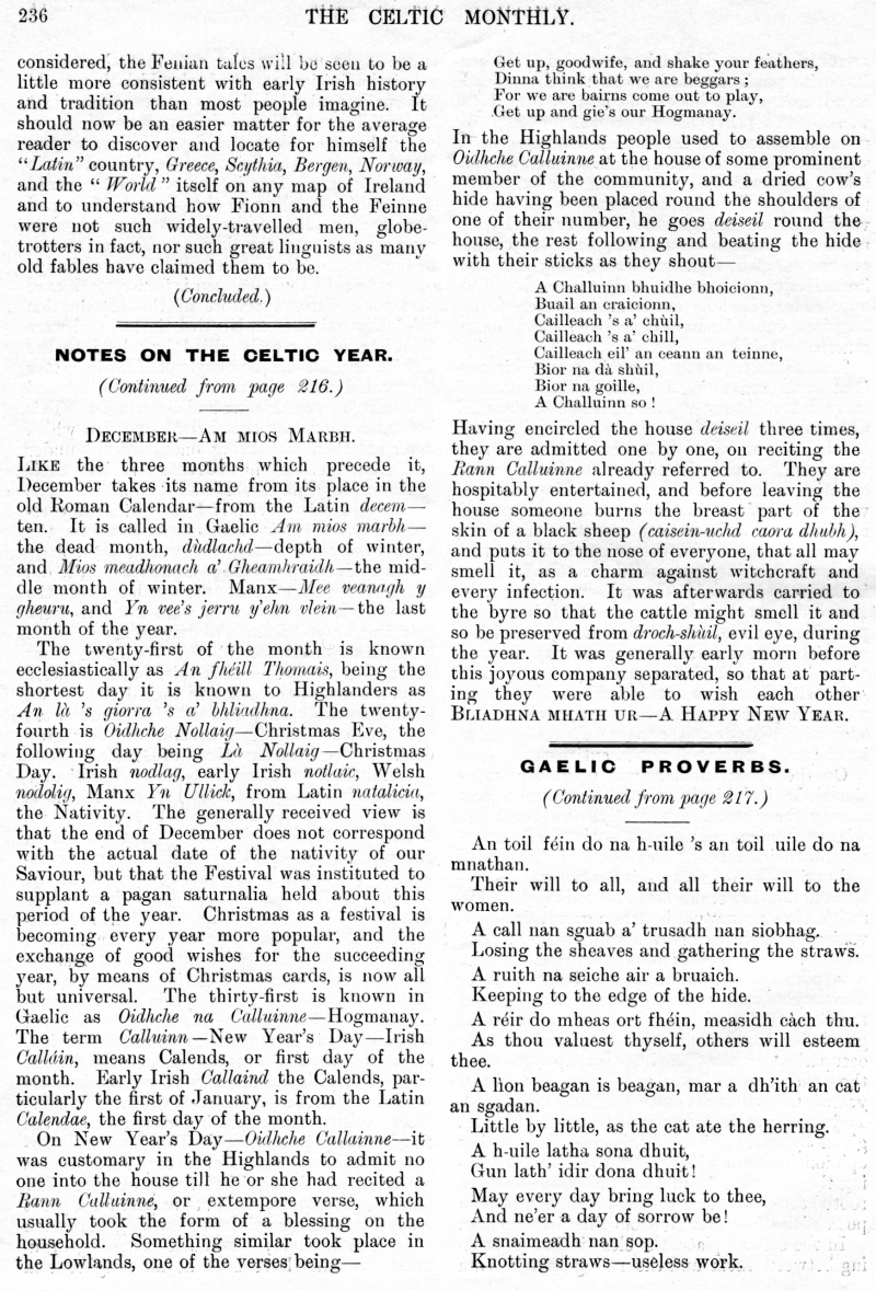 Notes on the Celtic Year, Gaelic Proverbs, The Kilt Threatened, Patrick