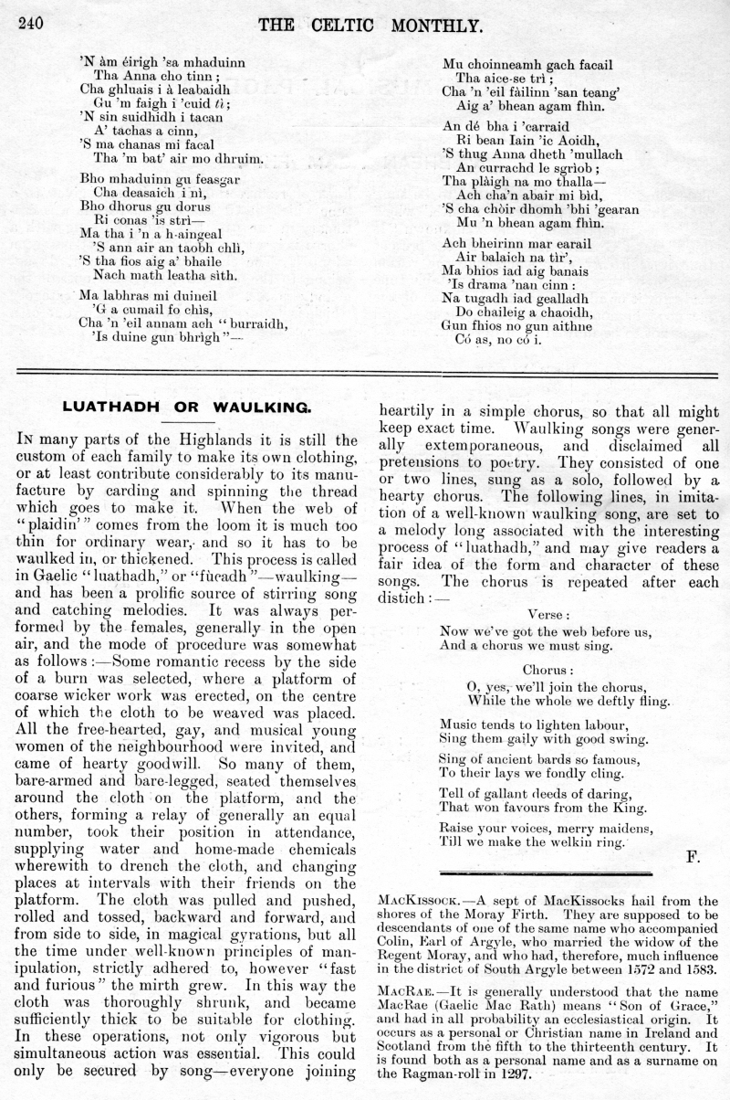 MacDonald's Collection 1784, Our Musical Page, Luathadh or Waulking.