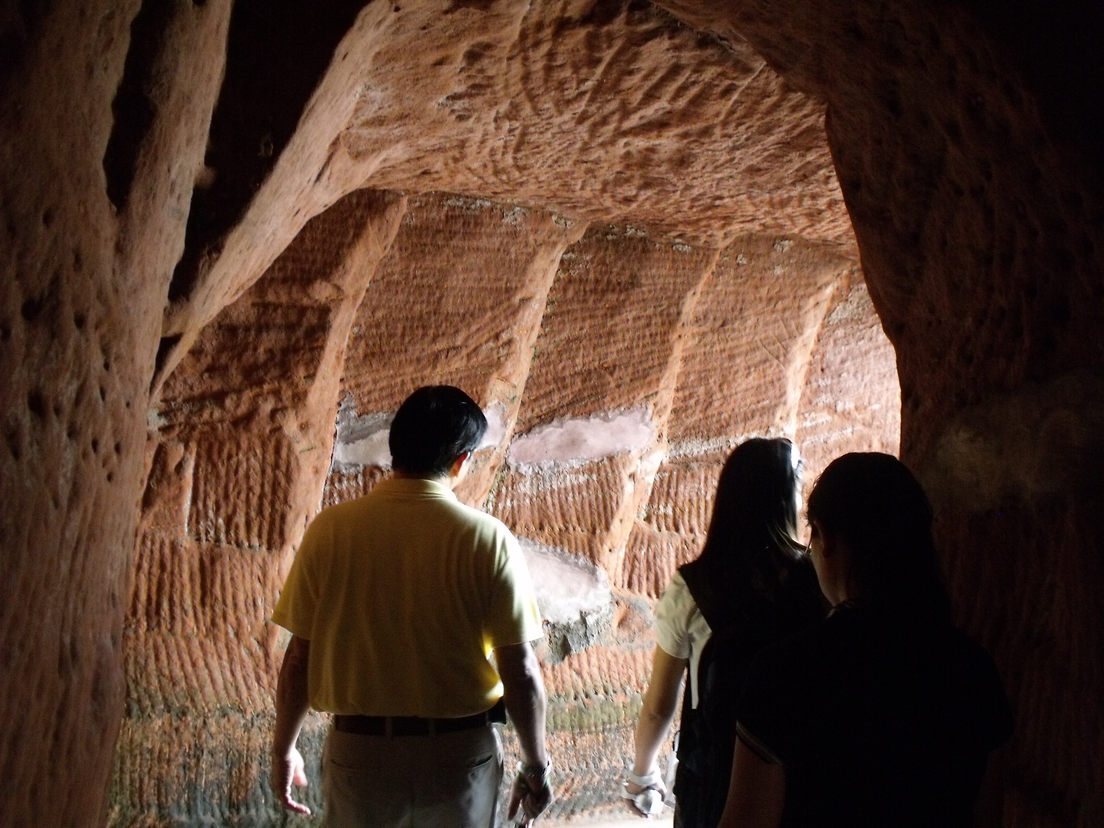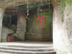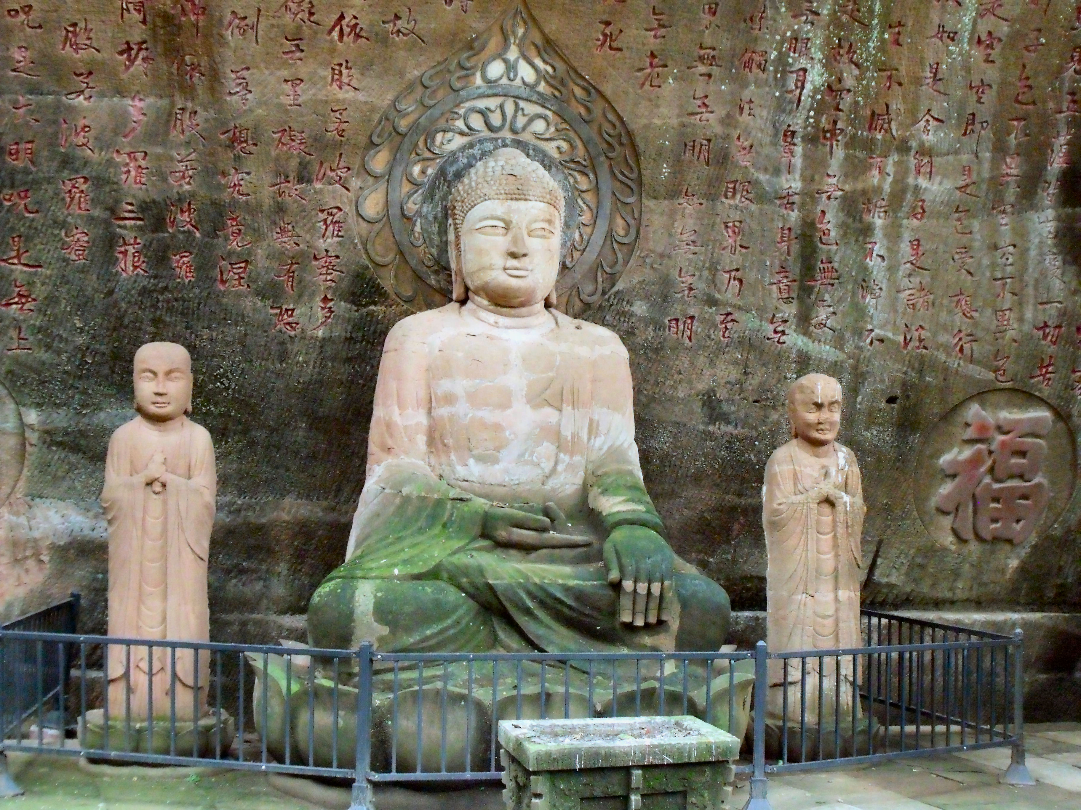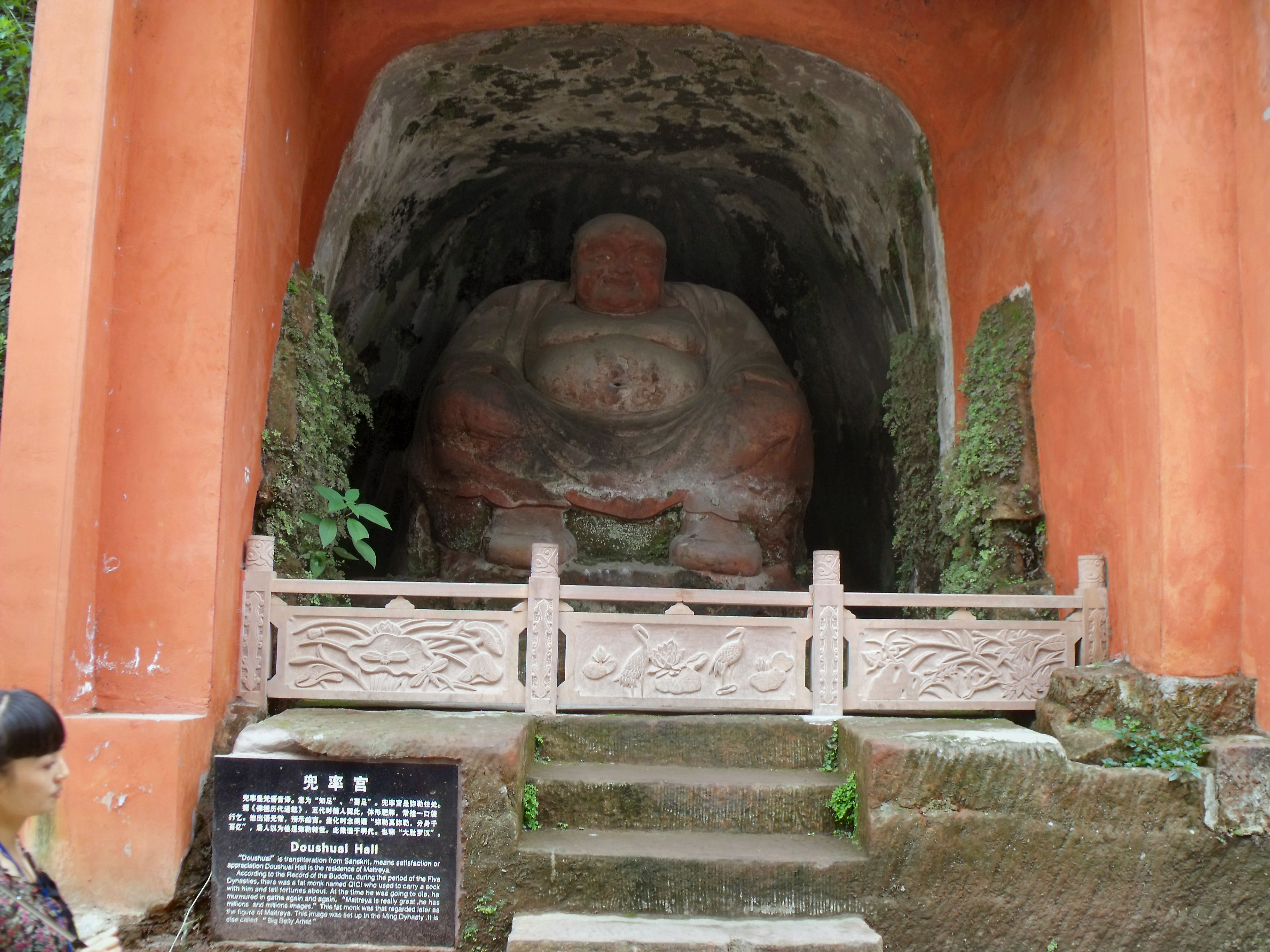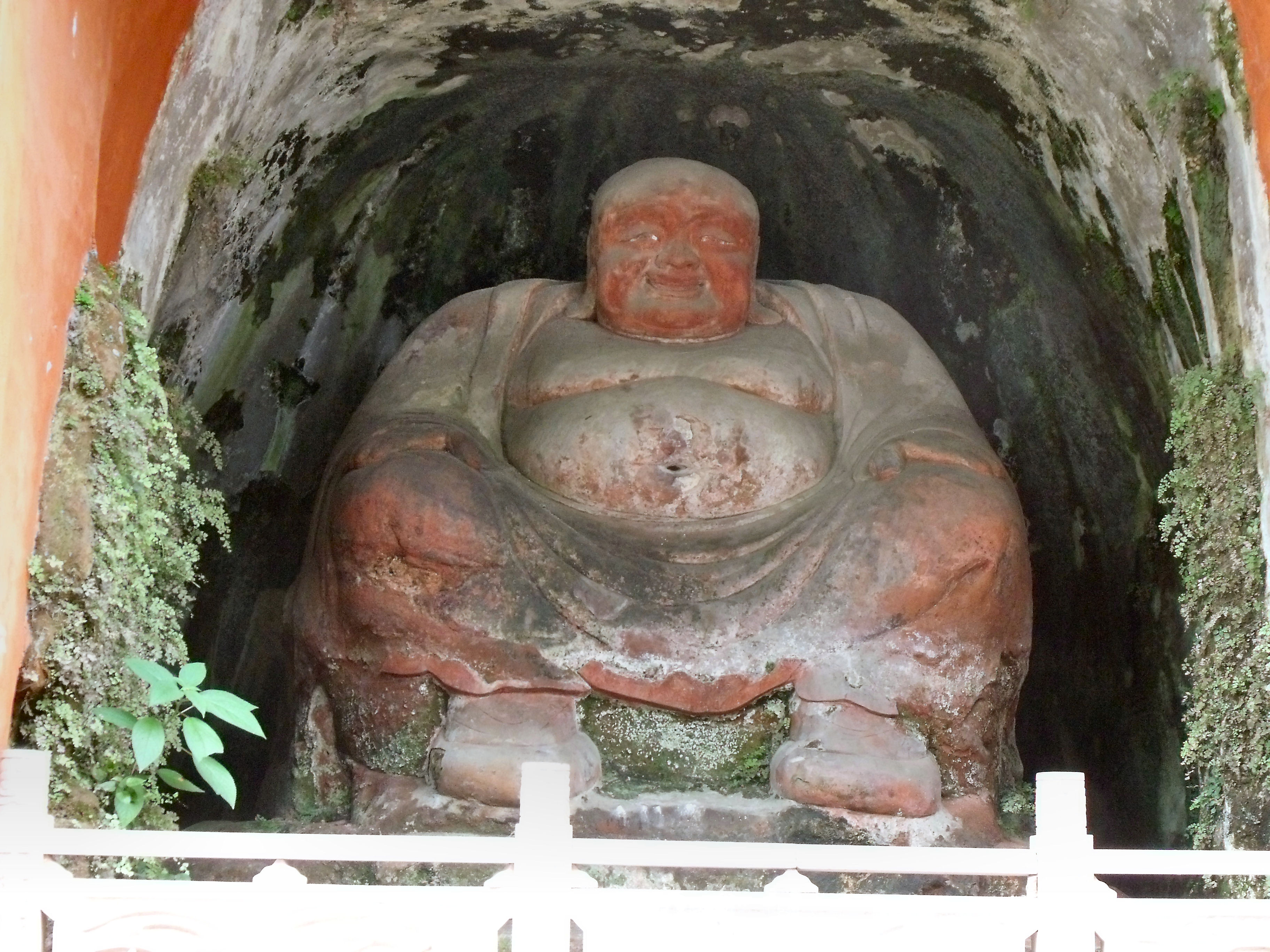 discovered cave with a happy Buddha inside it. The happy Buddha is not a