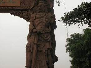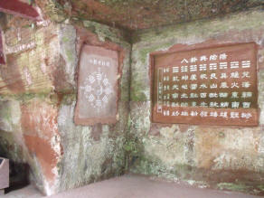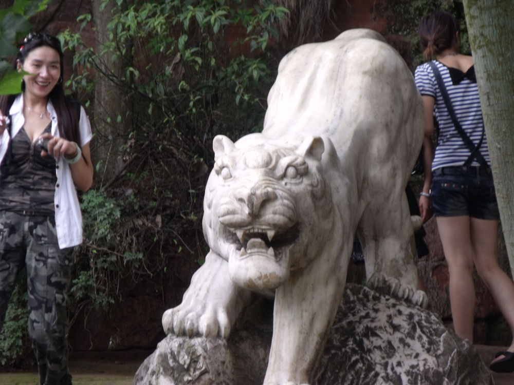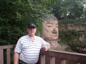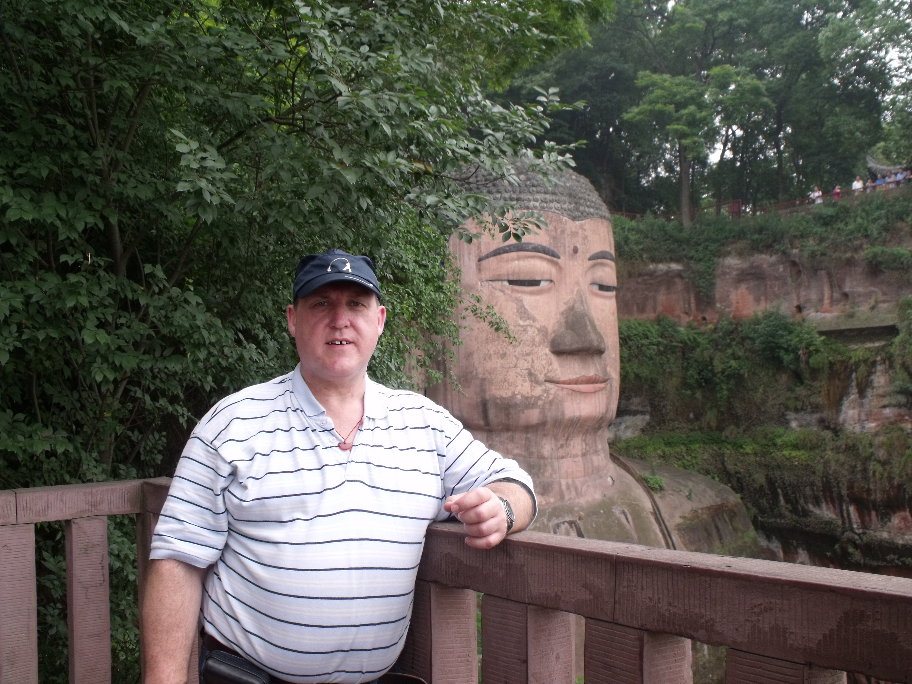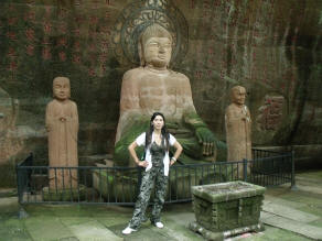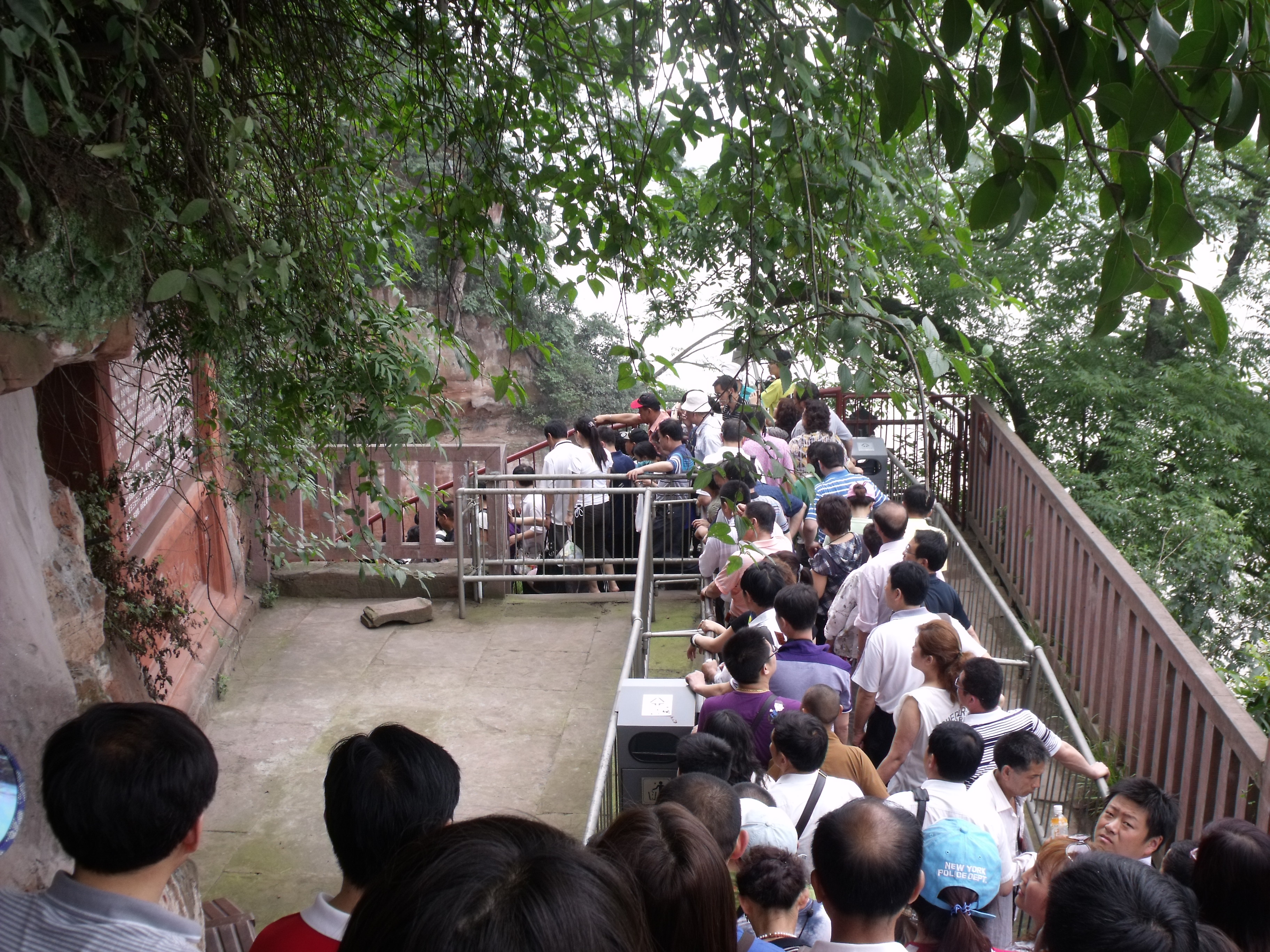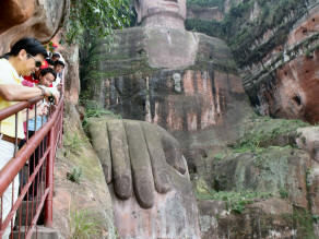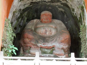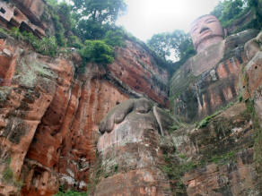 The giant Buddha sits at the entrance to the three rivers called Minjiang,