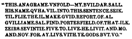 Small as is the community of Kilmalcolm, there appears to be a considerable diversity of opinion on religious matters among its members. There are no less than four places of worship in the village. First among these is the Parish Church, which we understand is the most largely attended. There is also a Free Church, a Cameronian or Macmillan . meeting-house, and some other Dissenting place of worship, the particular denomination of which we do not at present remember. The Parish Church is a handsome structure, erected in 1833 in the auld kirkyard, on the site of a small edifice which existed from time immemorial, and which was, perhaps, more in keeping with the character of the village than its more spadous successor. On one side of the church is the burial vault of the Porterfield family (an aisle of the old building), the prindpal proprietors in the locality, and for ages past the lords of the Duchal estate. There is a curious anagrammatical inscription on one of the walls, a copy of which we recdve from Mr. Robertson, a decent and intelligent old shoemaker in the village, who seems to have an honest pride in all that is connected with the community of which he is a useful member. The lines are as follows, and we must leave such of our readers as are skilled in this species of composition to read the riddle for themselves—premising, however, for the satisfaction of those who neither know nor care about such enigmas, that their loss is of trifling consequence:—