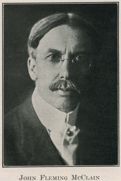 JOHN FLEMING MCCLAIN, Vice-President and Director of Foreign Business of the Remington Typewriter Company, is one of the most enterprising and energetic Scots in New York City. He entered this large concern in his youth and his promotion from the lowest step to his present position has been due to close application to business and sheer ability.