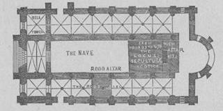 the ground-plan by the oblong shaped space at the east end of the nave.