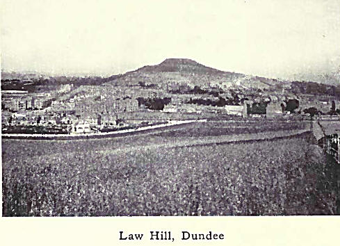 The next district takes its character and its name from the Sidlaw Hills. Starting from Kinnoull Hill, these hills enter Angus at Gask. Many of their most picturesque, though not their loftiest summits, are already passed before the bold cliffs of Lundie, whose surrounding woods are jewelled with lochs, the tower-crowned Kilpurnie, and the wooded hill of Auchterhouse (1399 ft.) are reached, and the greatest height of the entire chain is attained in Craigowl (1493 ft.). Seen from the opposite shore of Fife, this last mountain appears to dominate the. whole district and forms a grand background to the city of Dundee, on which the nearer cone-shaped Law Hill looks down. Between these two there stretches from east to west the fertile district of Strathmartine.