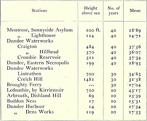 average rainfall in Forfarshire is 30*29 inches, the highest mean