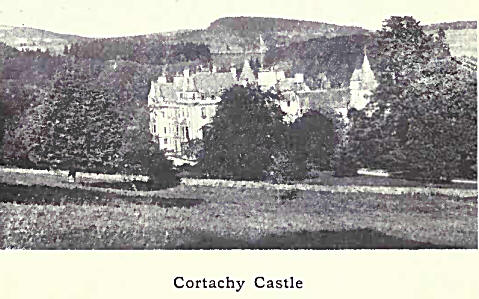 Cortachy Castle exhibits the mingling of architecture of different dates—it was not completed till after the middle of last century—but all the parts unite in one superb whole. The interior also is full of interest. The vaulted Charter Room holds the family records, and the “King’s Room” was occupied by Charles II on his memorable “Start” from his austere covenanting supporters in 1650. In the magnificent grounds is the “Garden of Friendship,” where notable visitors have from time to time planted trees.
