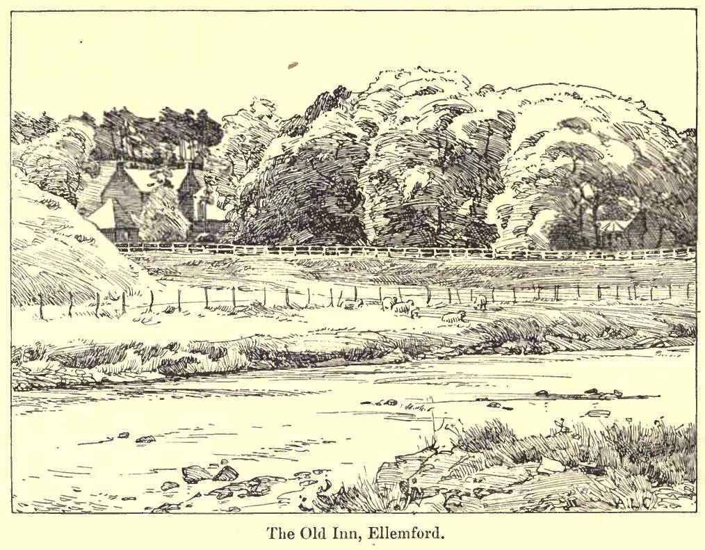 Longformacus, which we caught distant sight of in a former chapter from Hardens Hill, is the most important of these oases, and the Dye water, spouting from the moors through the village, lends a very sensible charm to the groves, gardens, and meads of the village, and the laird's demesne, through which it urges its boisterous course, to ripple away for a subsequent two miles among moorish hollows to the Whiteadder. Ellemford, hard by, where the streams meet, is a still more diminutive, and hardly less picturesque centre of life—a mere cluster of dwellings by a modern bridge across what in my youth was the uncertain ford which took its name from a feudal family of whose very name no one but antiquaries now reek anything. Two hundred years ago Ellem was a parish with a little church of its own, the site of which used to be pointed out. It is rare on the Border, and probably anywhere in Scotland, to find places perpetuating the name of a stock that is not merely forgotten, but which in a land of Homes, Swintons, Bertrams, Hepburns, Logans, and the like, has a strange alien ring. But the Ellems were great people in their day, which terminated with the fifteenth century, owning broad domains all through this country. Certainly their blood now runs in the veins of many a Border family, gentle and simple. Curiosity concerning a spot associated with so many days of glorious youth, when place-names vexed my soul no whit, and, carried vividly in the mind through life, incited me to some brief search for the scant record of these shadowy magnates. Their doings would not prove of interest here. How they acquired and lost lands, whom they married, and how vigorously, like the rest, they laid about them is all sunk into the night of time. The shepherd never heard their name. It lives only in the notes of the serious antiquary, and every few years, when a visit hither of the county Archaeological Society falls due, the members are, doubtless, reminded of an obsolete race to which nothing attaches, even in a land seething with traditions and tenacious of the past, and they go home to forget it, no doubt, before the next day.