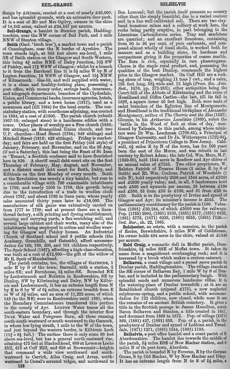 Bell-Grange, Beith, Belchester, Beld Craig, Belhaven, Belhelvie