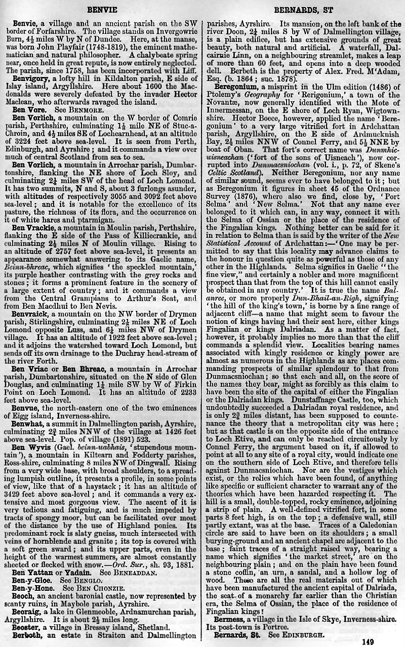 Ben Wyvis, Ben Yattan or Yadain, Ben-y-Gloe, Ben-y-Hone, Beoch, Beoraig,