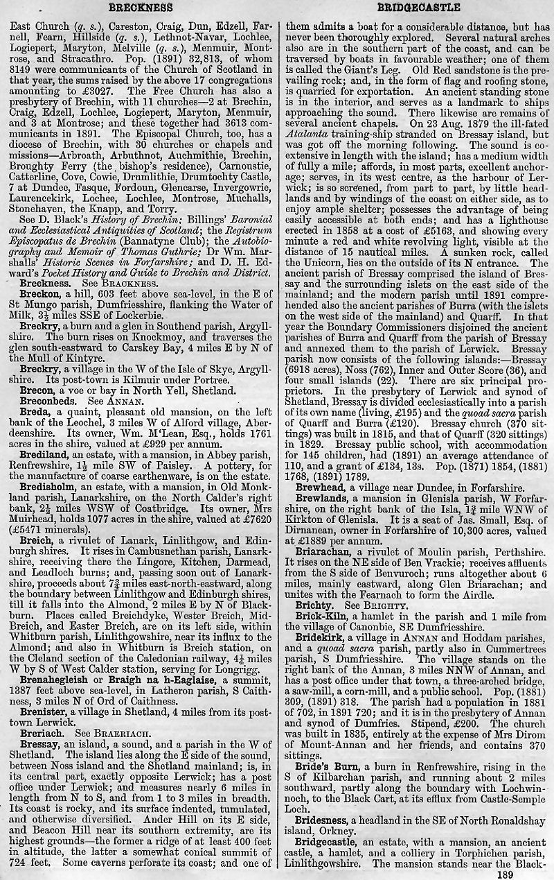 Braigh na h-Eaglaise, Brensiter, Breriach, Bressay, Brewhead, Brewlands,