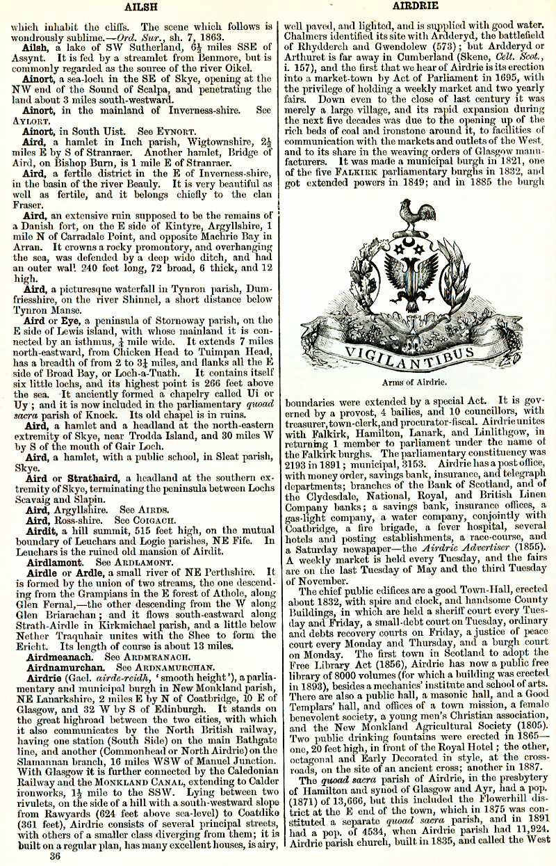 Ailsh, Ainort, Aird or Eye, Aird or Strathaird, Airdit, Airdlamont, Airdle or Ardle, Airdmeanach, Airdnamurchan, Airdrie