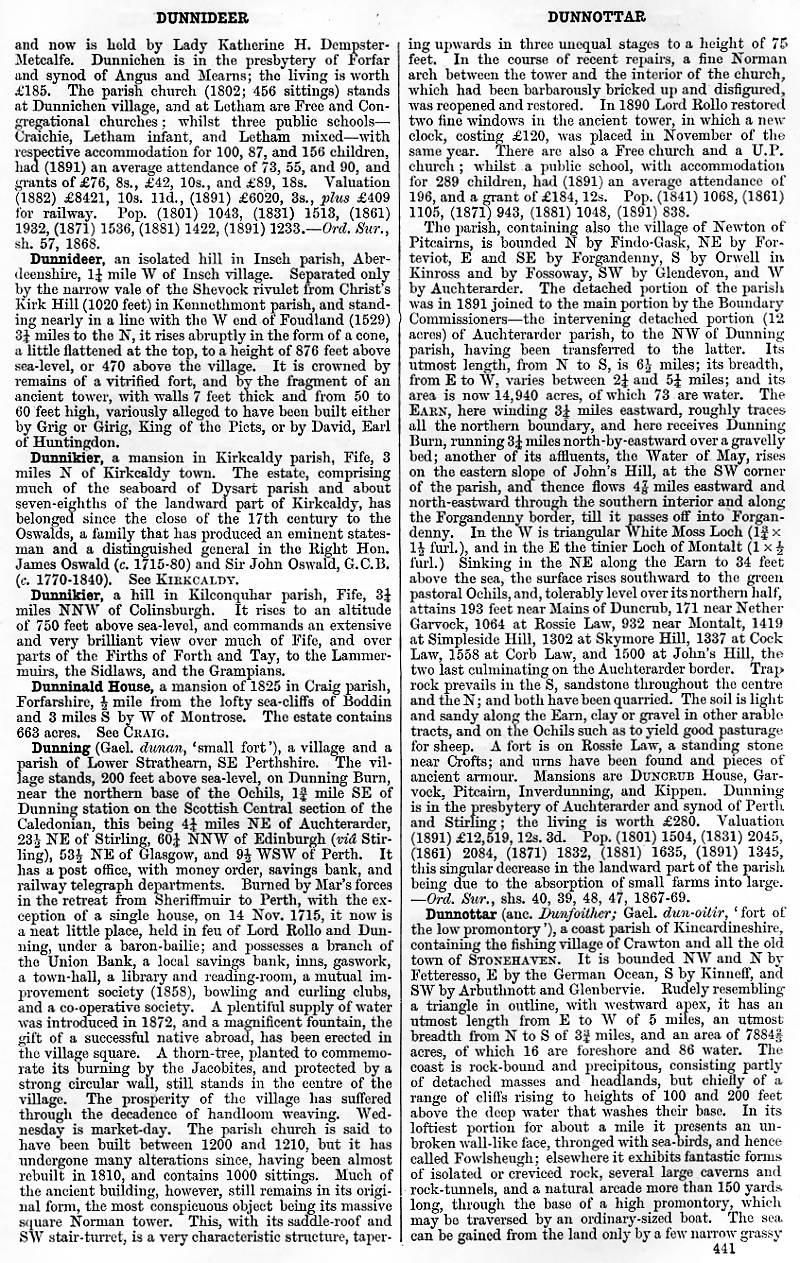 Dunnideer, Dunnikier, Dunninald House, Dunning, Dunnottar