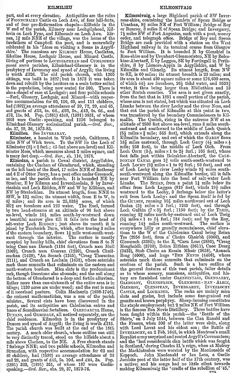 Kilmilieu, Kilminster, Kilmodan, Kilmonivaig
