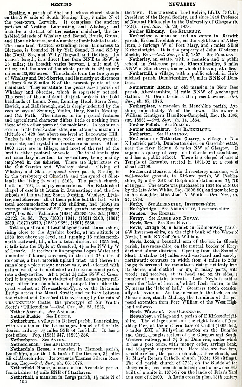 Netherton Quarry, Netherurd House, Nethy, Nethybridge, Neudos, Nevay, Ben