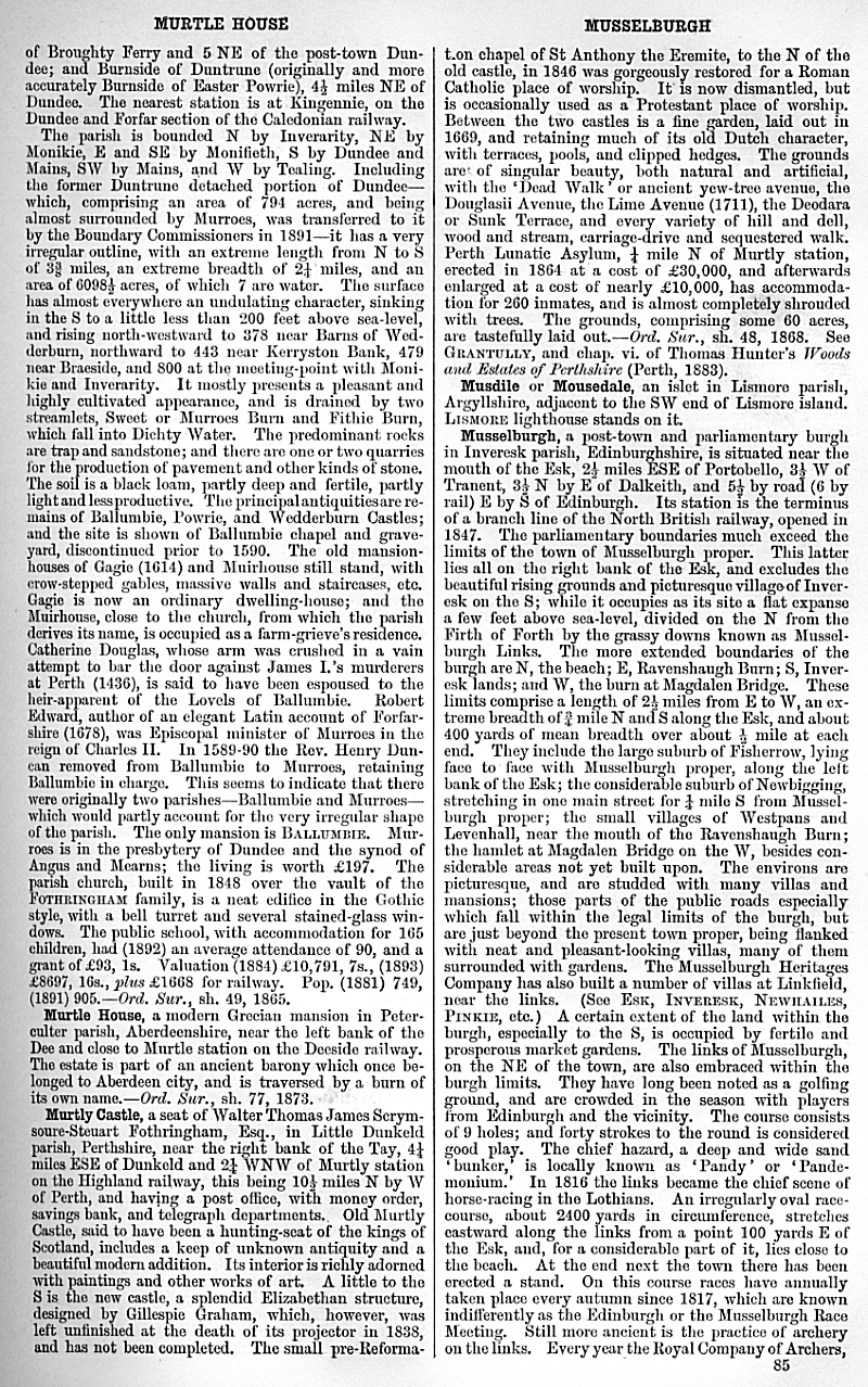 Murtle House, Murtly Castle, Musdile or Mousedale, Musselburgh