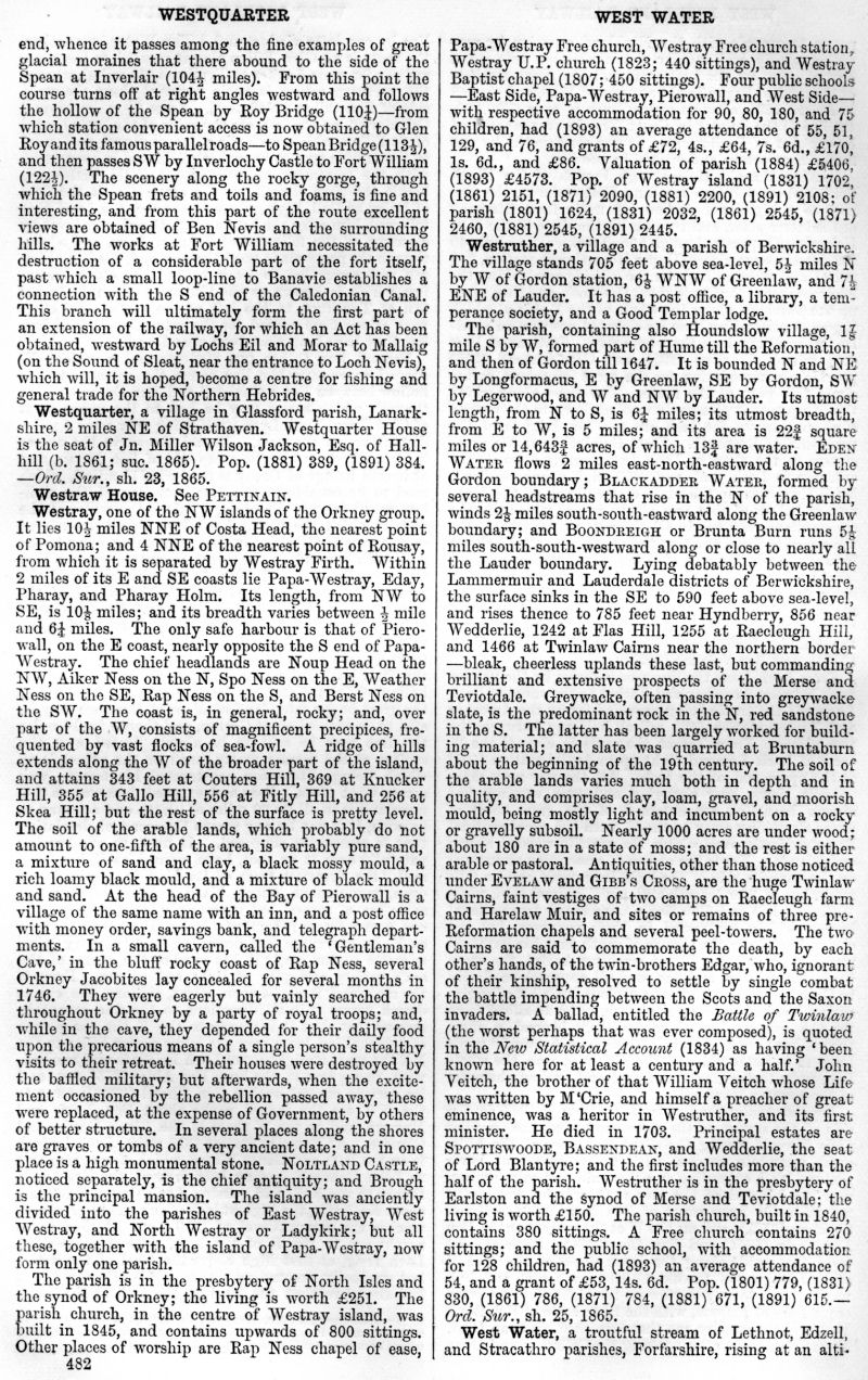 Westquarter, Westraw House, Westray, Westruther, West Water