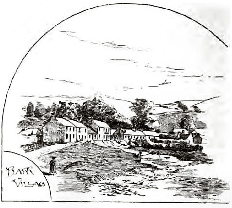 the Village of Barr, with the rushing Gregg in front and the Kelton Hill