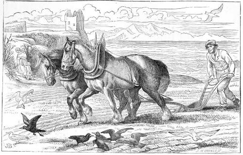 Come and learn a lesson from this picture! See how that man bends his neck to his work, and how, with strong arms and steady eye, he guides his plough along the furrow! See these noble horses how they press forward, and put their whole strength to the plough, so that it moves on without a halt, and turns up the earth like brown waves. Look, too, at these wild sea-gulls that have left the white waves of that ocean which is breaking on the shore, and have fled far to gather their day's food from the dark waves of this furrowed field. See the black rooks that have come from their trees to join their white friends from the ocean, and are getting such a dinner as they have not tasted during the whole winter. How busy they all are ! There is no idleness or laziness here ! And what would become of us if every one was to become idle and sulky, and yawn, and get cross, and say, "Oh, I don't like work! I won't do it. I want fun, and nothing but fun!" Well, let us see how you would get on if everybody took this into their head.