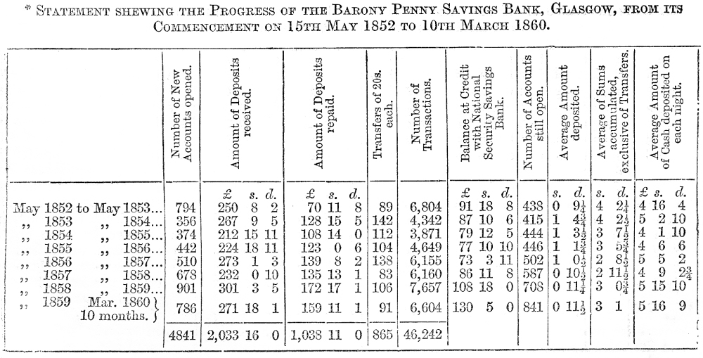 Penny Banks in Glasgow has, since May 1852, received in small