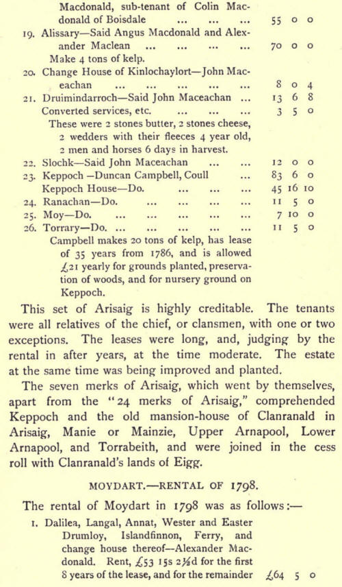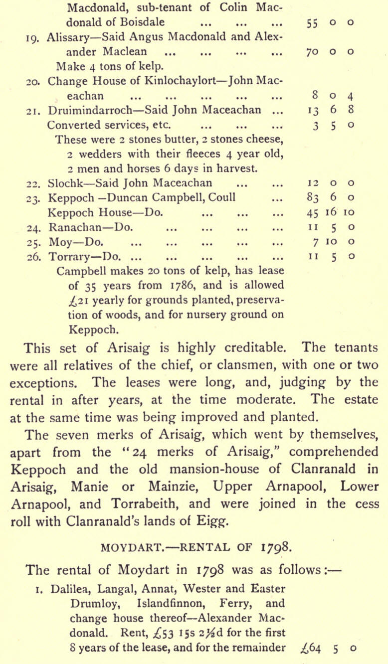 in Moydart consisted of 27 merks land, and those of Arisaig seem to