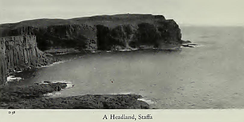 “As I write, here on the hill-slope of Dun-I, the sound of the furtive wave is as the sighing in a shell. I am alone between sea and sky, for there is no other on this bouldered height, nothing visible but a single blue shadow that slowly sails the hill-side. The bleating of the lambs and ewes, the lowing of kine, these come up from the Machair that lies between the west slopes and the shoreless sea to the west; these ascend as the very smoke of sound. All around the island there is a continuous breathing; deeper and more prolonged on the west, where the open sea is, but audible everywhere. The seals on Soa are even now putting their breasts against the running tide; for I see a flashing of fins here and there in patches at the north end of the Sound, and already from the ruddy granite shores of the Ross there is a congregation of sea-fowl—gannets and guillemots, skuas and herring-gulls, the long-necked northern diver, the tern, the cormorant. In the sunblaze, the waters of the Sound dance their blue bodies and swirl their flashing white hair o’ foam; and, as I look, they seem to me like children of the wind and the sunshine, leaping and running in these flowing pastures, with a laughter as sweet against the ears as the voices of children at play.