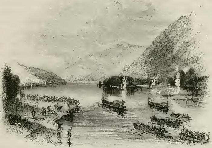 Opposite the Fort lay the Earl of Sefton in his boat, with his