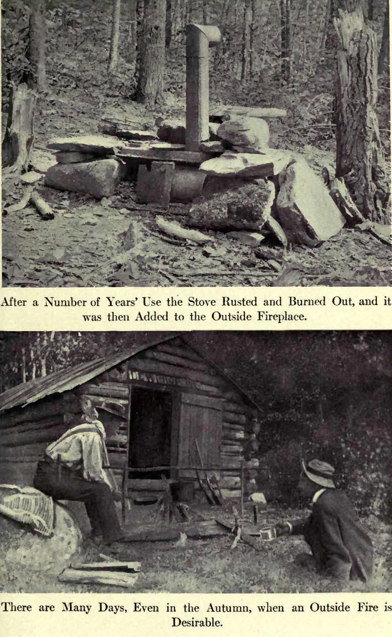 In the warm weather the heat of the stove is intolerable, so that a fireplace should be constructed in front of the cabin