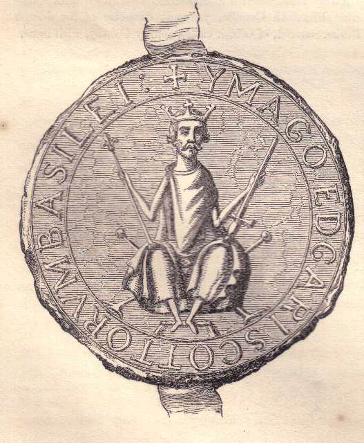 By one of his charters Edgar made an ample donation to the monks of St. Cuthbert of lands in Berwickshire, and in the preamble he plainly acknowledges the feudal tenure by which he held Loundonium, or Lothian, from William Rufus, king of England. A supplement states that it was granted on the fourth of the calends of September of that year in which ‘King William, son of the great King William,’ built a new fortress near Bambrough, against Robert, earl of Northumberland. The donation was made “for the souls of his father and mother, his own soul and body, and the souls of his brothers, Edward and Duncan.” Edward was slain with his father, Malcolm Canmore, at the slege of Alnwick castle in 1093, and Duncan, after expelling for a time Donald Bane from the throne and reigning in his stead, was treacherously assassinated by Malpedir, maormor of Moern, in 1096, as already related in his life.