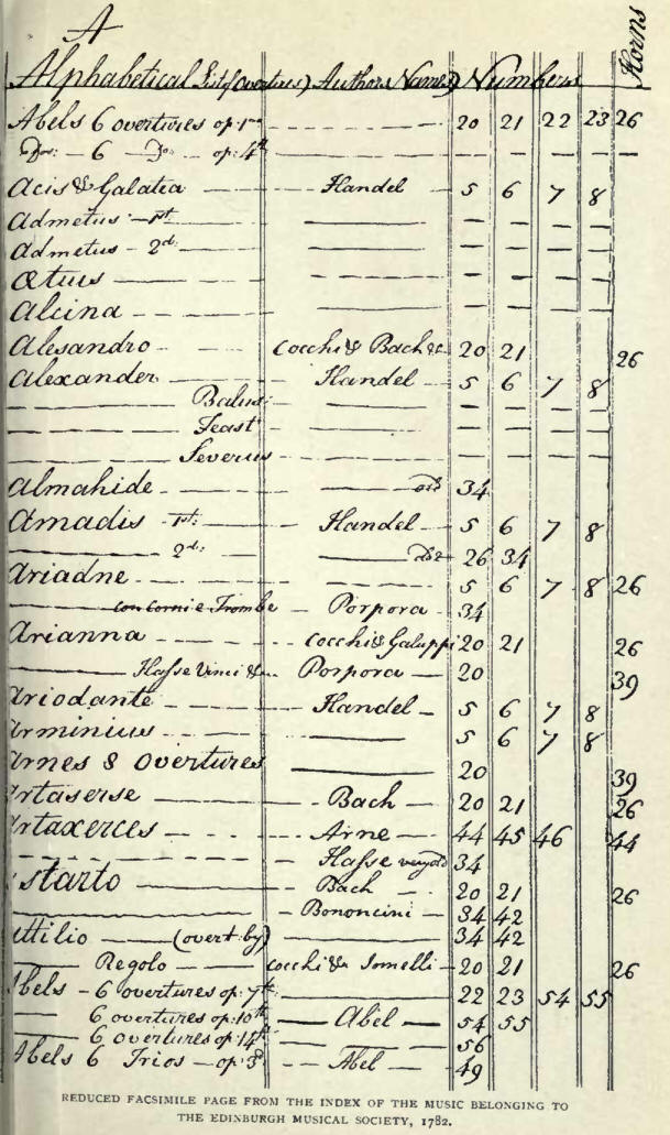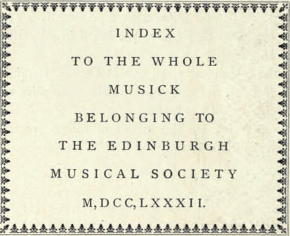 Edinburgh Musical Society in 1782. The index, which is in the
