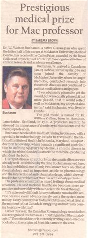 reflect well on McMaster, my adopted alma mater," said Buchanan, who lives