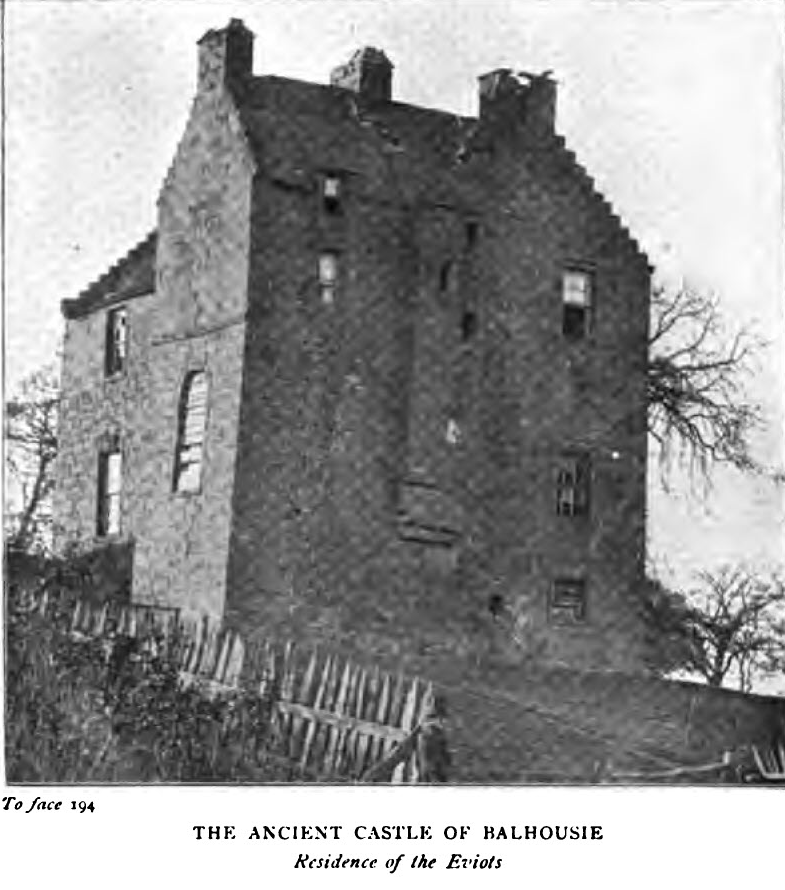This is one of the most ancient families in connection with the history of Perth. Their origin cannot be accurately traced. Before 1214 Richard Eviot witnessed a charter from Walter Ruthven, of Ruthven, to the monks of Scone. In the reign of David II. there was a Richard Eviot, proprietor of Cassendally, in Fife. In 1422 a charter was granted by Murdoch, Duke of Albany, to John Eviot, son and heir of William Eviot, of the lands of Balhousie resigned to the said William. Richard, eldest son of John Eviot, was proprietor of Balhousie from 1448 to 1480 It is recorded:—