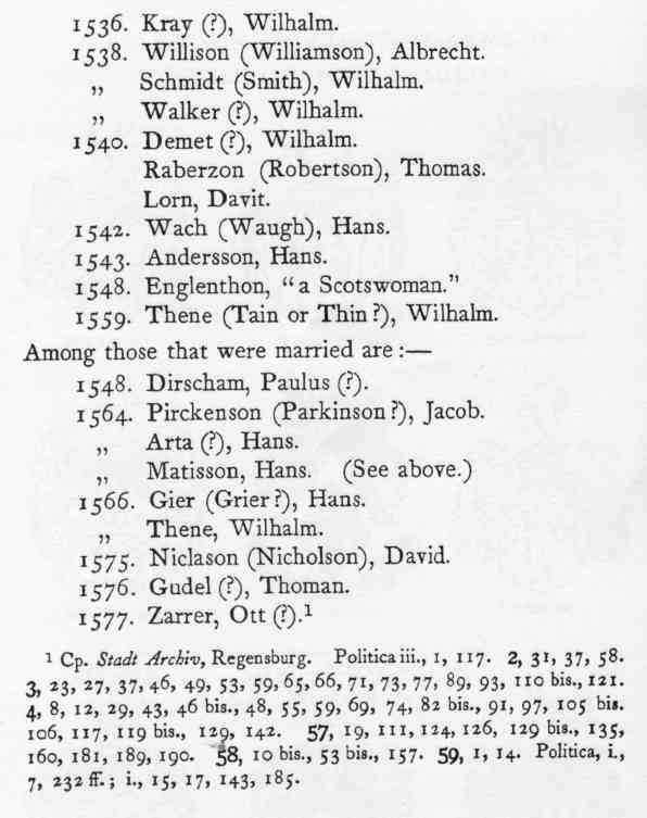 Scotswomen to the citizenship of Ratisbon. The first on the list is Hannes