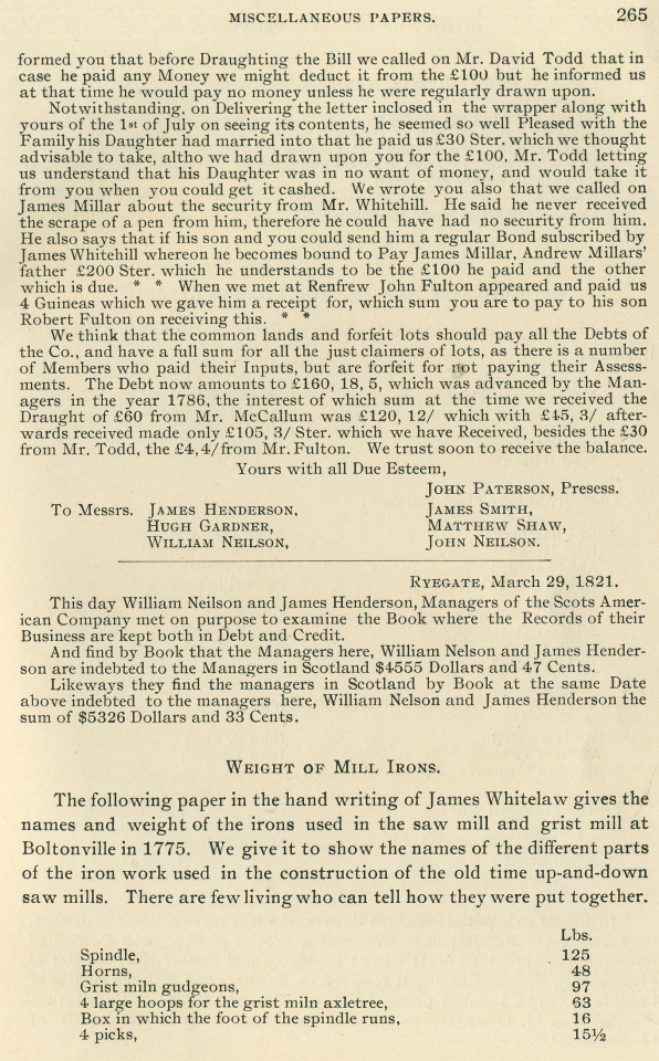 TIMBER.—ROBERT BROCK’S BOND.—WEIGHT OF MILL IRONS.—CERTIFICATE OF
