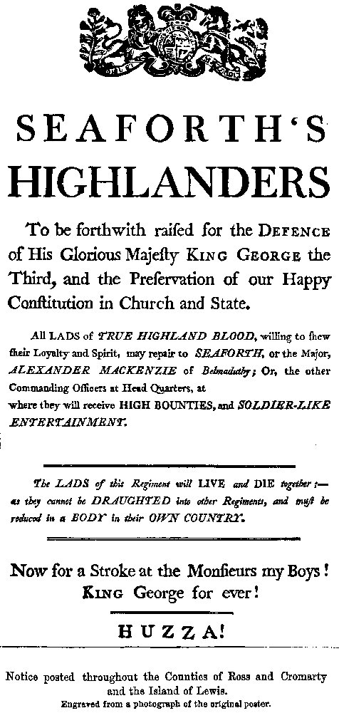 Seaforth, to raise a Regiment for Government, Letter of service granted
