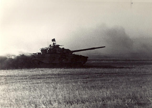 The usual progression for exercises was followed, troop level followed by squadron/company group with the infantry, and then the full bhuna with the BG, involving engineers, artillery, helicopters, old Uncle Tom Cobley and all. The main difference was that we were using real bullets and manoeuvring at the same time, proper fire and movement. The area was so vast that we could really only be a danger to ourselves. Tanks had two white lines painted down either side of the turret and the basic rule of thumb was that, if you saw a target and there was nothing “friendly” within the arc of the two white lines, you could blast away to your heart’s content. We were accompanied by members of the BATUS permanent staff in their dayglo painted vehicles who were there mainly to maintain safety, but most of the time we were just left to get on with it.