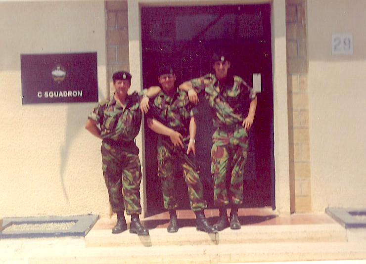 And then in June of that year we went to Cyprus. I can’t actually remember how we got there but obviously we flew. I do remember the CO getting mightily hacked off with the RAF for making us wait around for come considerable time before we set off, a recurring theme during my military career. We hated RAF movements, who we thought lax, scruffy, rude and inefficient – which they were. Anyway, eventually we landed in RAF Akrotiri and wended our way up to Dhekelia in the Sovereign Base Area (SBA), where C Squadron was to spend the first three months of our six month tour before moving up on to the UN Green Line.
