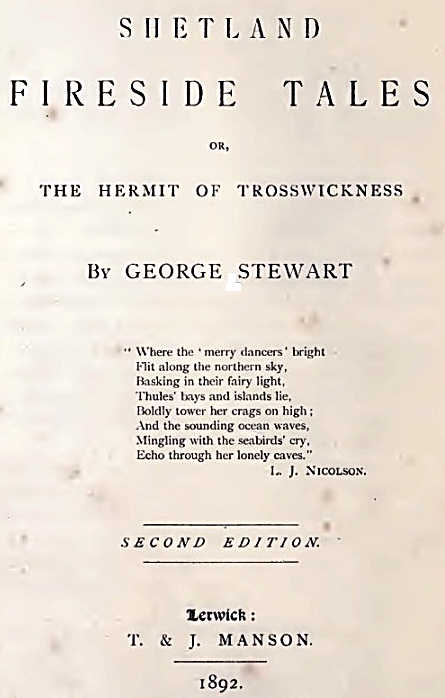 When about 14 years ago the Author of "Shetland Fireside Tales" had such misgivings regarding his first literary effort that even the initials attached to the work were a little misleading, he little thought that ever a second edition would be asked for. Not only, however, was the first edition readily taken up, but for many years past a desire for a second has been expressed, both in this country and America. This affords another example of how an Author, who writes for fame, sometimes does not obtain it, while another with no such expectations, but being simply and humbly desirous to express what he knows and feels, finds in the community of human thought and feeling a response to his own. It adds not a little to the Author's satisfaction that in issuing a second edition native publishers can share in any credit due to this as a native effort.