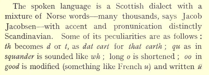 That Shetland was inhabited from remote times is evident from the number of primitive stone implements found all over the islands. The rude hammer and axe; the finely-polished celts and knives; the stone circles and brochs; the burial mounds, with urns and stone coffins—all bear mute testimony to successive stages of progress towards civilisation. Who the earliest inhabitants were it is not easy to discover; but it is generally agreed that for a number of centuries the Picts held sway till supplanted by invaders from Norway. Norse influence began with Viking raids, and then towards the end of the ninth century assumed the form of conquest. Scandinavian domination lasted till 1468. During this period the people were Norse to a large extent in blood and altogether in language, manners and customs; and although Scottish influence has brought about many changes, yet the Shetlander still retains many of the Norse characteristics of his ancestors.