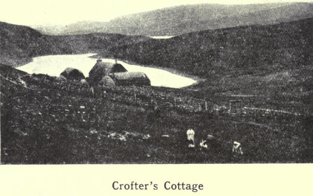 To be near the sea—their chief source of food—the early settlers made their homes close to the shore, where also they generally found the soil better than further inland. Accordingly most of the houses and crofts are situated along the coast, and in particular at the heads of voes, where often townships and villages have been formed. One striking feature is the bold contrast between the green cultivated township and the dark background of moor or hill, sharply marked off from each other by the ancient "toon" dykes. Still more noticeable are the large tracts of permanent pasture, where one may still see the ruins of cottages, once the homes of crofters who were evicted to make room for sheep.
