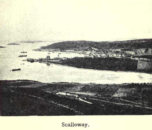 Scalloway (824), an ancient village, was at one time the capital. It is the chief port of call for steamers on the west, and is a centre for herring and white fishing. The Castle is the chief object of interest. (pp. Io8, 110, 126, 139, 140-2-5, 153, 156.)