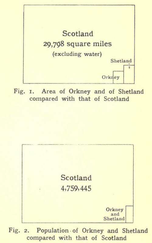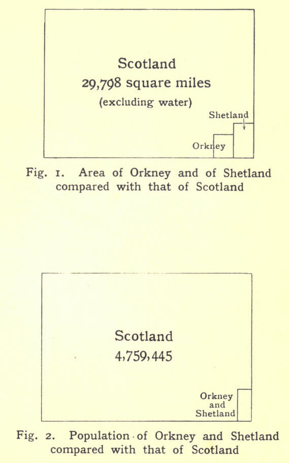Being far removed from the centres of commerce, and having few natural resources in themselves, the islands are almost entirely lacking in manufactures. Fishing and farming are the chief industrial pursuits, while the rearing of native sheep, ponies and cattle form a considerable part of the rural economy. Along with every croft or holding goes the right of common pasturage in the hills and moors, called "scattald." Crofts would be of little value without this common grazing, which is a remnant of the old Norse odal system of land tenure, and is peculiar to the islands of Shetland and Orkney. The word scaltald is from scat, a payment, akin to scot in "scot and lot."