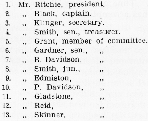 viz.:—A president, captain, secretary, and treasurer. Third. That