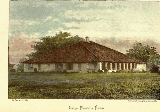 AfteR living at Puttihee for two years, I w as transferred to another out-factory in the same concern, called Parewah. There was here a very nice little three-roomed bungalow, with airy verandahs all round. It was a pleasant change from Puttihee, and the situation was very pretty. A small stream, almost dry in the hot weather, but a swollen, deep, rapid torrent in the rains, meandered past the factory, bearing the bullock-house it suddenly took a sweep to the left in the form of a wide horseshoe, and in this bend or pocket was situated the bungalow, with a pretty terraced garden sloping gently to the stream. Thus the river was in full view from both the front and the back verandahs. In front, and close on the bank of the river, stood the kitchen, fowl-house, and offices. To the right of the compound were the stables, while behind the bungalow, and some distance down the stream, the wheel-house, vats, press-house, boiling-house, cake-house, and workshops were grouped together. I was but nine miles from the head-factory, and the same distance from the station of Mooteeharree, while over the river, and but three miles off, I had the factory of Meerpore, with its hospitable manager as my nearest neighbour. His lands and mine lay contiguous. In fact, some of his villages lay beyond some of mine, and he bad to ride through part of my cultivation to reach them.